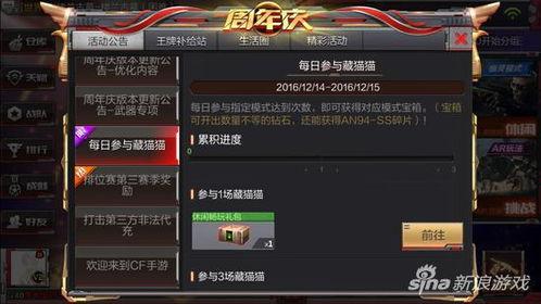 1. 参与方式:玩家只需在活动期间登录CF手游,即可参与抽奖。不过,需要注意的是,抽奖次数有限,玩家需要通过完成任务、充值等方式来获得。